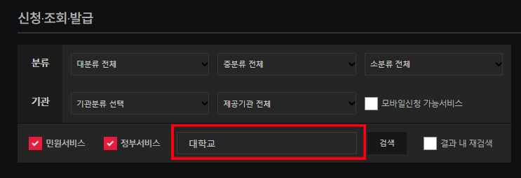 검색창에 대학교를 입력 후 검색을 눌러줍니다.